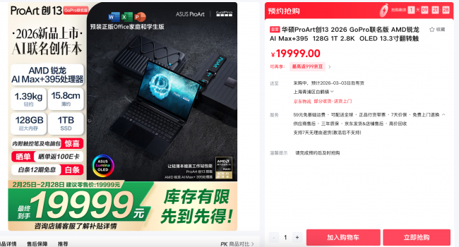 2月25日,全新华硕ProArt 创13 GoPro联名版 AI专业创作本于京东商城正式开售。针对专业影像创作者、旅行视频博主、运动内容创作者等移动创作需求,华硕ProArt携手智能影像设备GoPro融入联名设计,跨界打造专业级创作装备,助力轻松实现从户外拍摄、高效传输、智能整理、专业编辑等全流程创作闭环,链接高效户外创作生态。