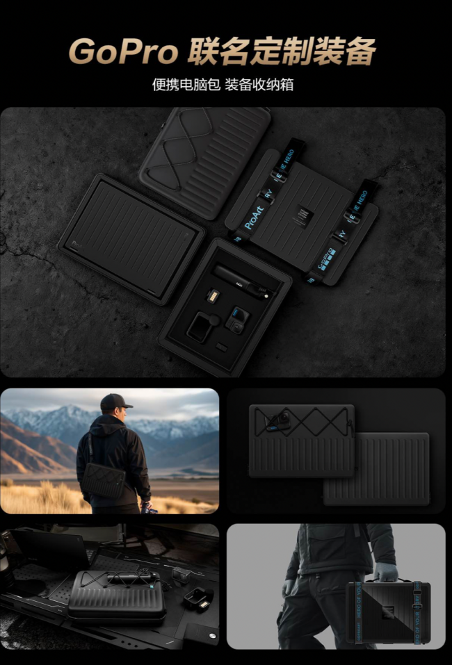 华硕ProArt 创13 GoPro联名版 整机轻约1.39kg、薄至15.8mm,纳米科技黑机身深度融入GoPro标志性设计元素,搭配独特设计的专用便捷包与收纳整理箱,契合户外创作用机场景下多设备携带的便携与安全,让笔记本与GoPro产品开启全新探险之旅,打造尽显质感的一站式移动创作工作站。