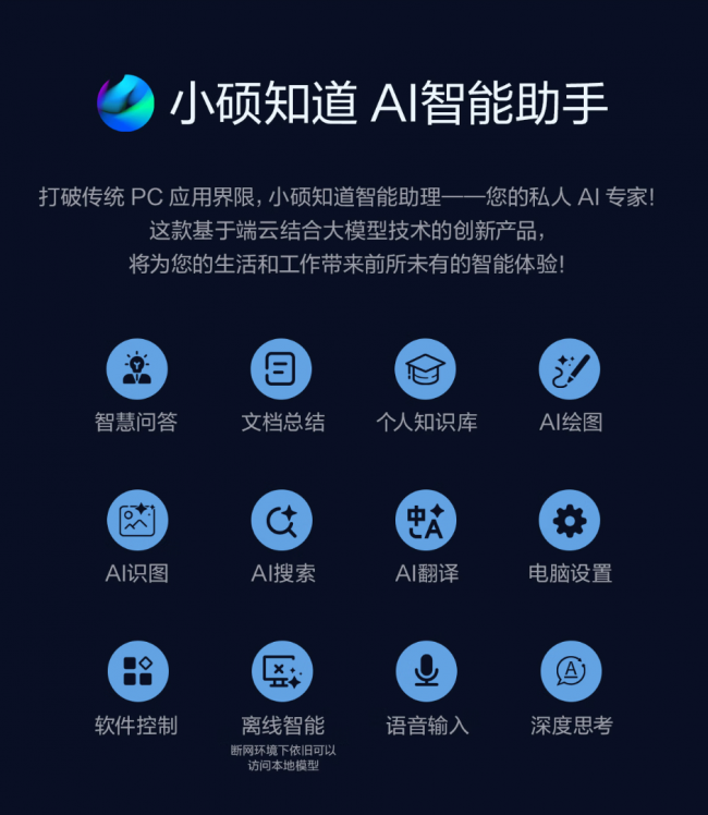 内置“小硕知道”AI智能助手,基于端云一体AI大模型,支持离线本地推理,图书馆、地铁、户外等无网环境也能稳定使用。涵盖智慧问答、文档总结、个人知识库、AI绘图、AI识图、AI搜索、AI翻译等功能,学生党梳理文献、解答难题,职场人撰写文案、生成PPT、翻译资料,效率直接翻倍,成为随身全能AI助理。
