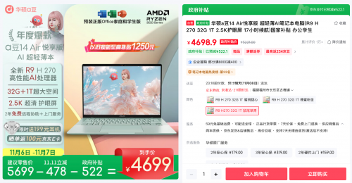 AI加速,华硕a豆14 Air 悦享版高颜高能 双十一到手4699元起
