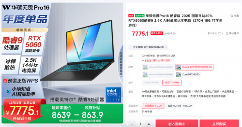 华硕无畏Pro16 2025搭载英特尔酷睿9升级版处理器、RTX 5060独立显卡、2.5K 144Hz高刷全能好屏,不仅助你高效完成学习、创作等任务,还升级带来更沉浸的开黑体验,兼顾你的闲暇娱乐时光。